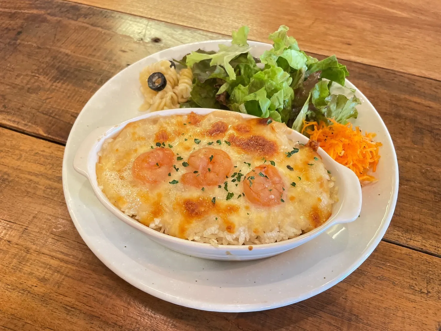 - エビぷらす(ガパオ、オムライス、クリームドリアにエビフライトッピング)